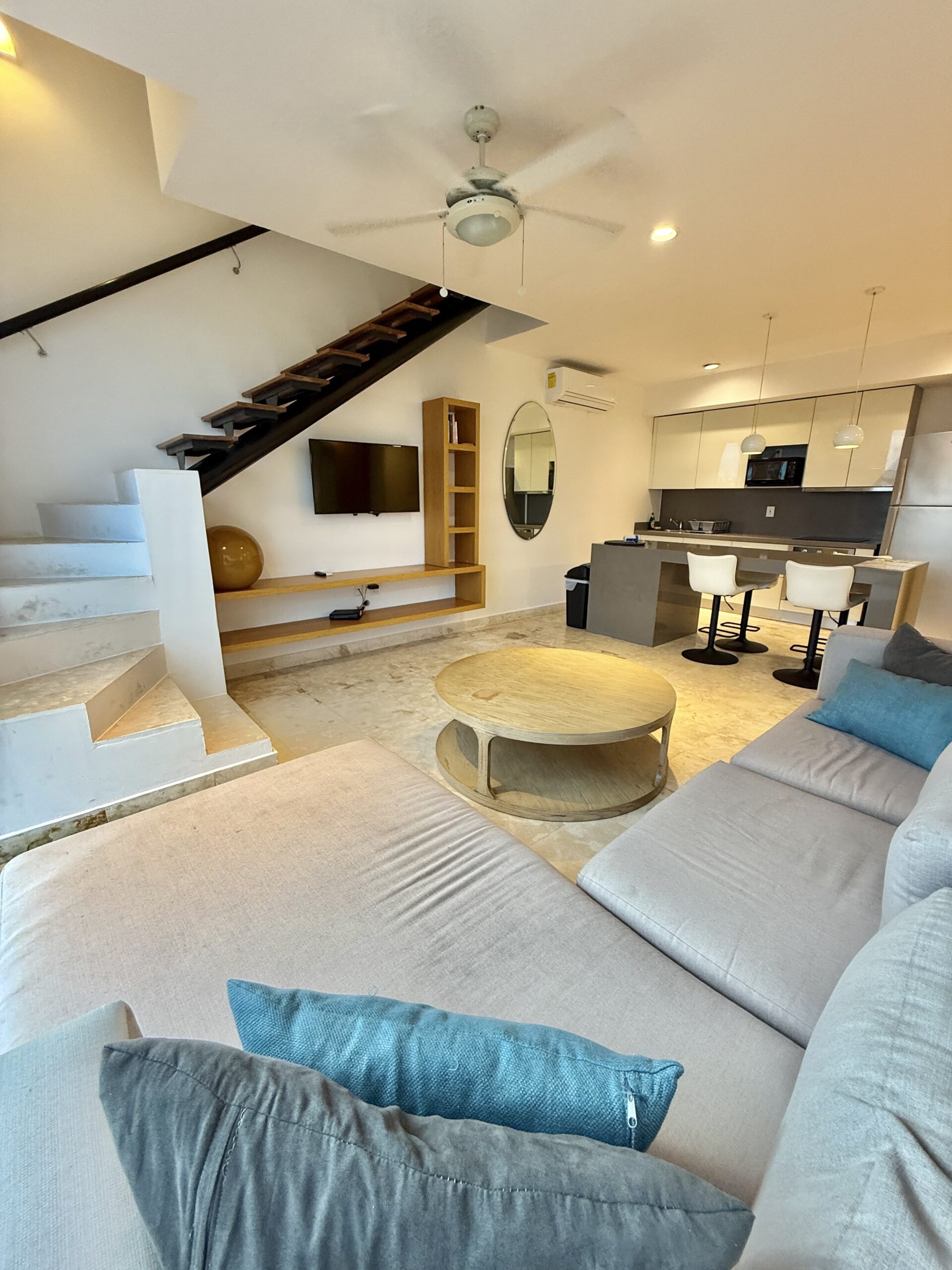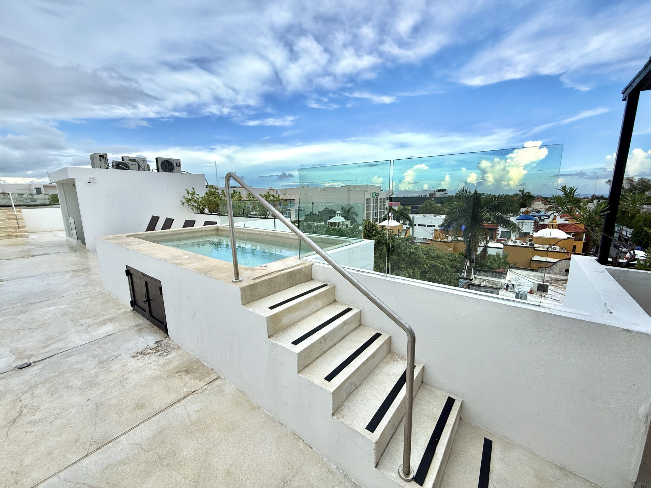 We invite you to stay in our penthouse condo in the Anah building, centrally located in Playa del Carmen near 5th Avenue and the beach. The condo features a large private rooftop, two bedrooms with one king bed and one queen bed, air conditioning, bathrooms, smart TVs, a full kitchen, and a living room with fast WiFi. Enjoy a private rooftop with a mini pool. The building offers 24-hour security, a rooftop pool, jacuzzis, a gym, garage parking, and a business center. Multiple units are available for larger groups.