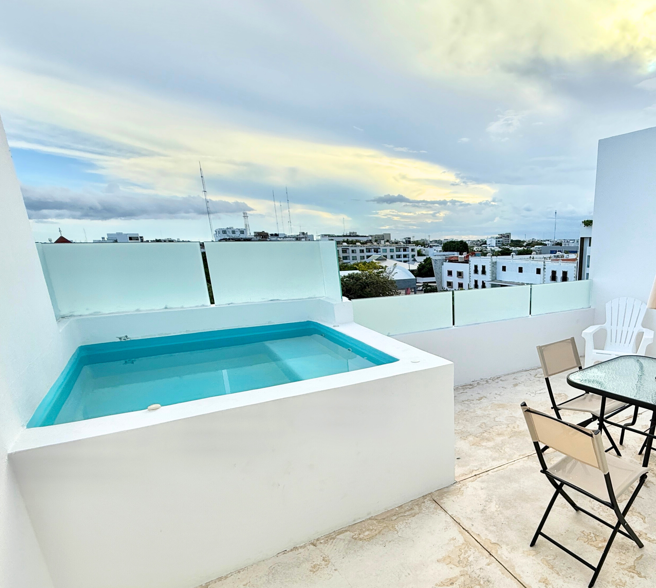 - Private rooftop with a mini pool (note: this pool is not heated and does not have jets, it is simply for cooling off) accessible from the second bedroom upstairs.